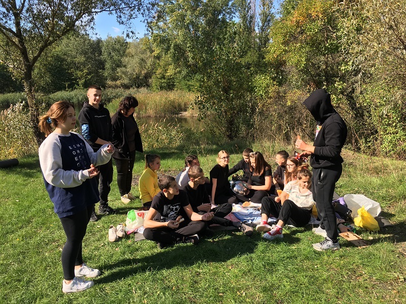 Для дітей було організовано рухові активності, спрямовані на розвиток фізичних якостей особистості, зокрема, спритності, узгодженості дій у команді, рухової координації. Практичний психолог Лідія Петрівна провела вправи, спрямовані на розвиток взаємодії у групі, відпрацювання навичок стабілізації емоційного стану через дихальні вправи. Особливо активні та винахідливі учасники походу отримали смачні призи від класного керівника. Також діти, пам'ятаючи про екологічну мету свого походу, прибрали сміття біля Піщаного кар'єру. По завершенні навчальної частини учень 9 класу Шевченко Владислав влаштував для однокласників смачне частування.