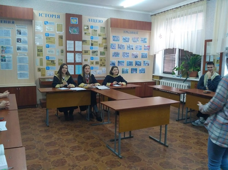 17 березня учні 9-Б класу ліцею разом із вчителькою англійської мови Вікторією Шастун стали учасниками міжнародної онлайнової гри Mystery Skype (Загадковий скайп). Завдання учнів здогадатися про країну партнера ставлячи Так/Ні географічні запитання англійською мовою.