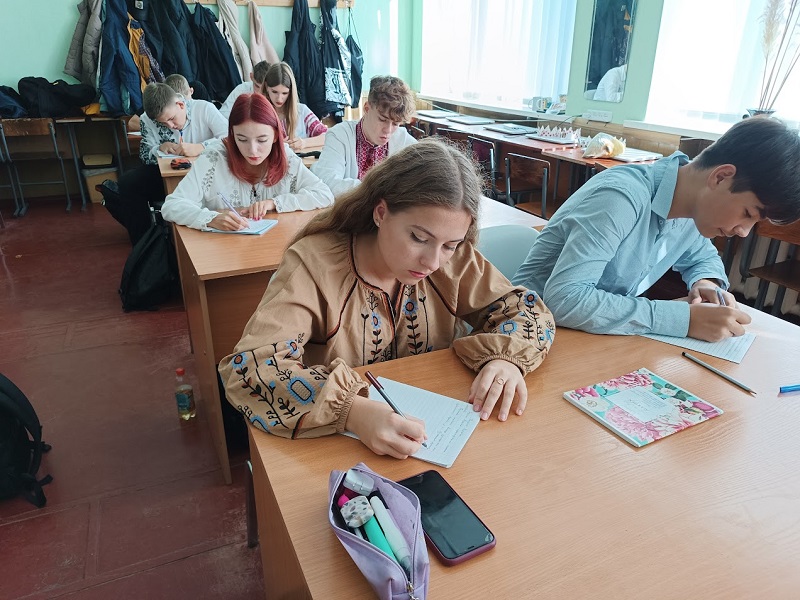 27 жовтня традиційно вся ліцейна громада долучилася до флешмобу єднання всіх свідомих україніців - написання Всеукраїнського диктанту національної єдності з української мови з нагоди Дня української писемності та мови, що цьогоріч відбувався за новим календарем. Ліцеїсти взяли участь у флешмобі День вишиванки або просто вдяглися святково, щоб відчути атмосферу свята та єднання. Текст диктанту вразив нас проникливістю та актуалізацією теми доріг додому, адже для багатьох в умовах нинішньої війни повернення додому є поки що нездійсненною мрією.