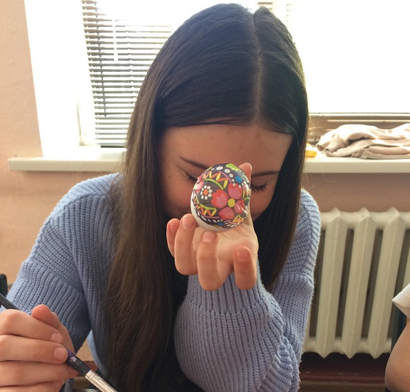 Роботи Сергейкіної Анни та Середи Аріни, виконані в традиційному стилі, за допомогою воску та писарика, найбільш вразили однокласників.