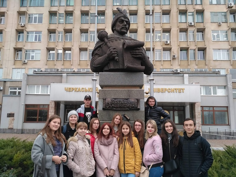 Учні нашого ліцею 1 листопада на запрошення директора ННІ історії і філософії Наталії Земзюліної та випускника нашого ліцею Дениса Хоменка відвідали Черкаський національний університет ім. Б. Хмельницького. Наша мандрівка співпала в часі з "Тижнем відкритих дверей", що традиційно проводиться в університеті для майбутніх абітурієнтів. Супроводжували учнів учителі ліцею Олена Бурлака, Оксана Марченко та Людмила Гудзь.