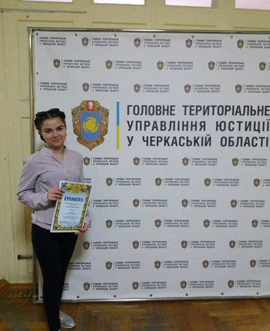Анастасія Лабик взяла участь і увійшла в число переможців (ІІІ місце) підсумкового туру обласного Конкурсу «Знавці права», що проводиться Головним територіальним управлінням юстиції у Черкаській області серед учнів закладів загальної середньої освіти м. Черкаси та Черкаської області. За результатами проведення Конкурсу переможці нагороджені рекомендаціями до вступу в кращі ВНЗ України юридичного спрямування та грамотами Головного територіального управління юстиції у Черкаській області.