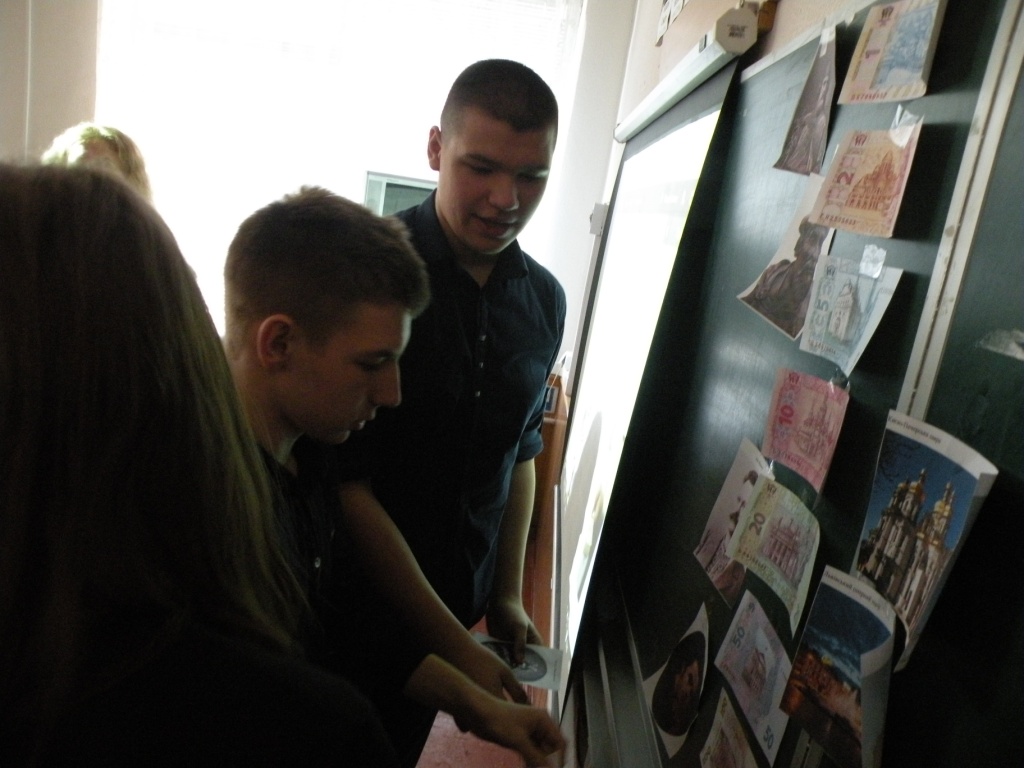 Котенко Юлія і Луценко Діана, учениці 10-А класу, провели для восьмикласників цікавий захід - практичне заняття на тему «Гроші України та валюти країн світу»; ознайомили із історією виникнення грошей, питаннями важливості заощаджень, перевірили, як учні знають національну валюту та валюти країн світу.